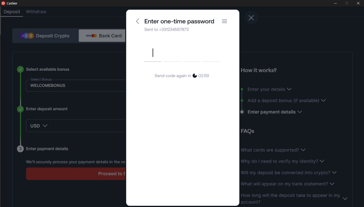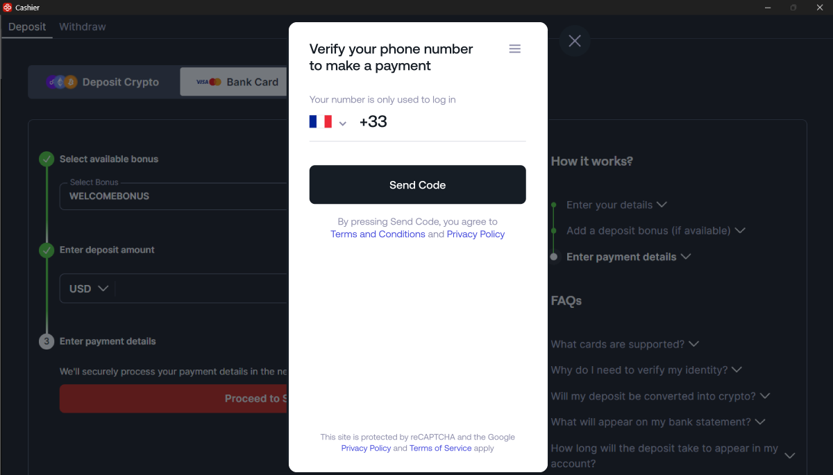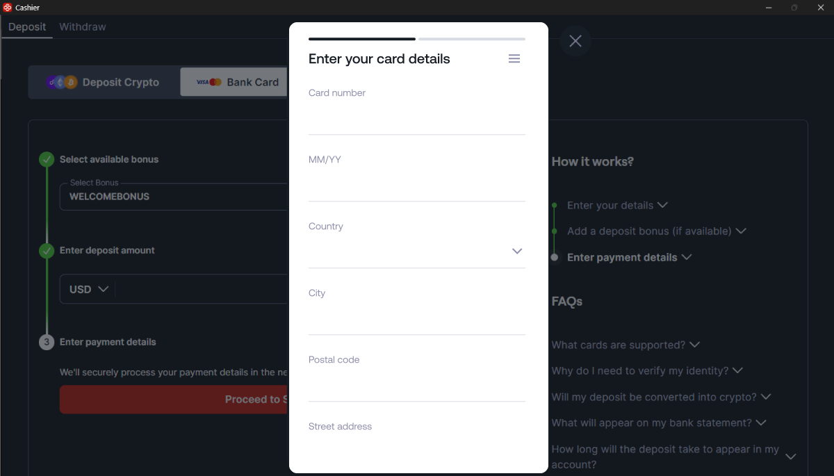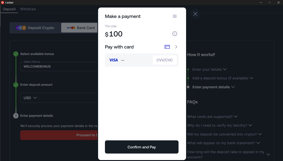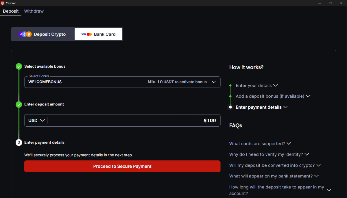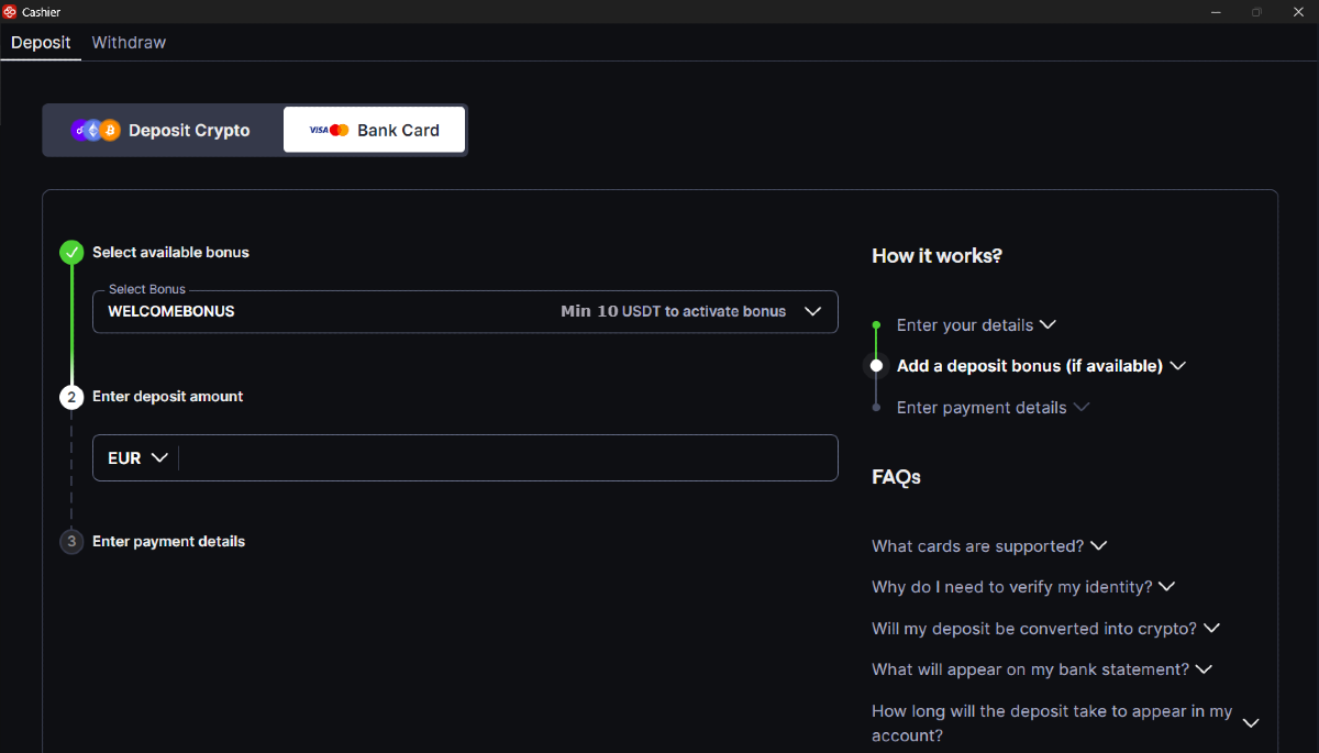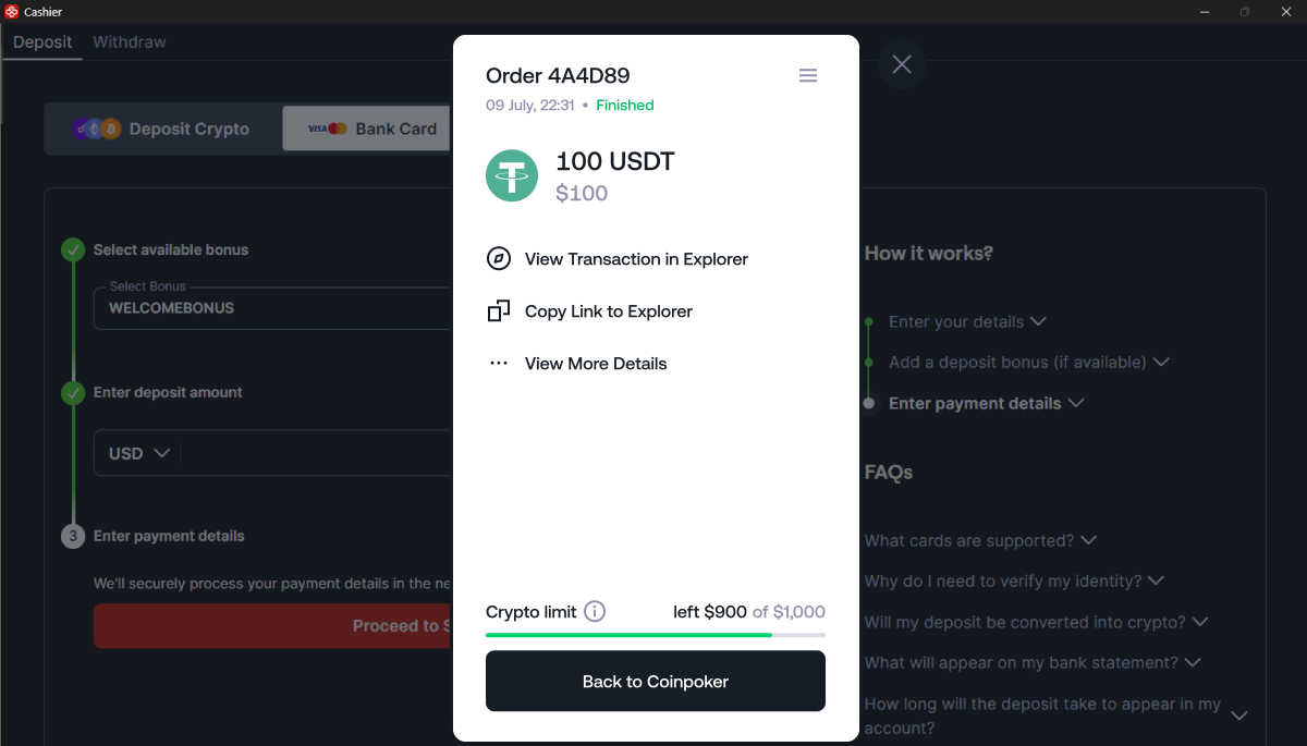 Siga as instruções abaixo para depositar na CoinPoker com seu cartão bancário.